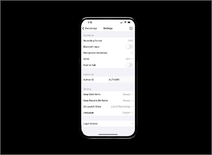 Die ODMS Cloud-Smartphone-App unterstützt Bluetooth-Mikrofone und -Headsets und bietet Flexibilität und Konversation. Benutzer können die Mikrofonempfindlichkeit frei anpassen und so die Diktierqualität für jede Umgebung optimieren und klare und präzise Aufnahmen gewährleisten.